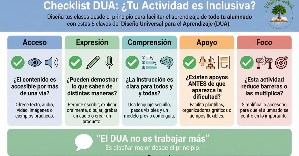 ¿Tu actividad es realmente inclusiva? Checklist práctica DUA para el aula
