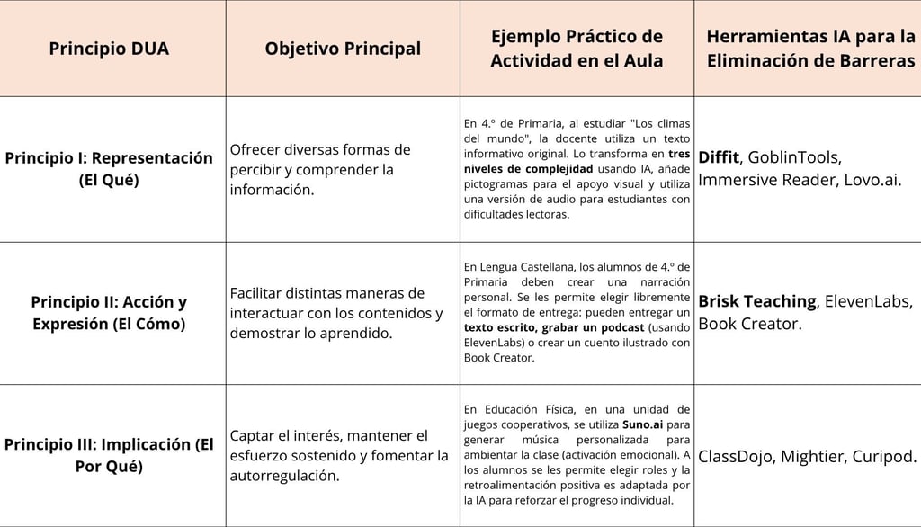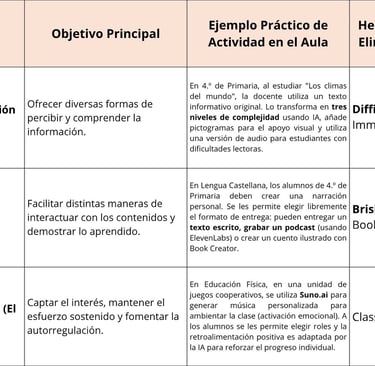 Esta incorporación subraya la necesidad de proporcionar al alumnado múltiples medios de representación, de acción y expresión y formas de implicación en la información que se les presenta.