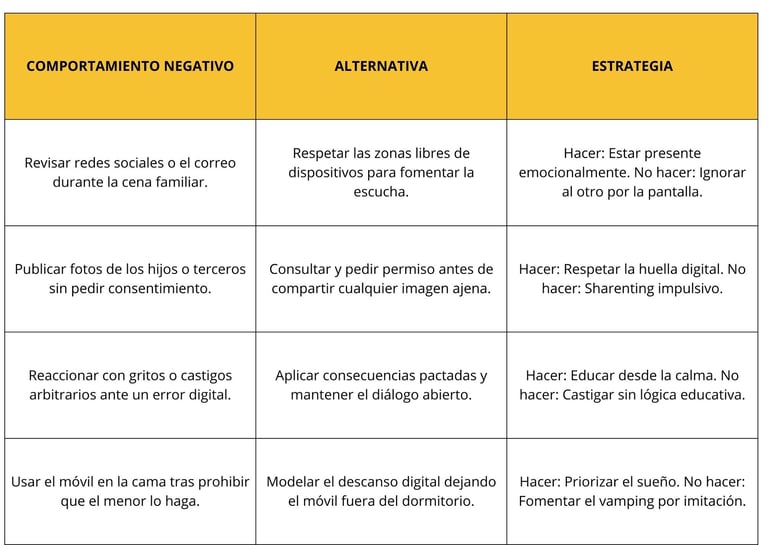 El dormitorio nocturno: Los dispositivos duermen fuera de la habitación para prevenir el vamping (uso de pantallas restando horas de sueño), que afecta al desarrollo cognitivo y metabólico.