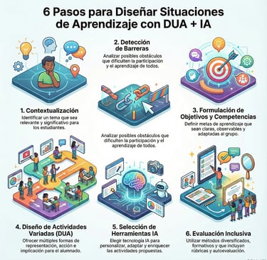 Diseñar la Secuenciación Didáctica: Organizar las sesiones, fases, estrategias DUA, recursos y agrupamientos para llevar a cabo el proceso.